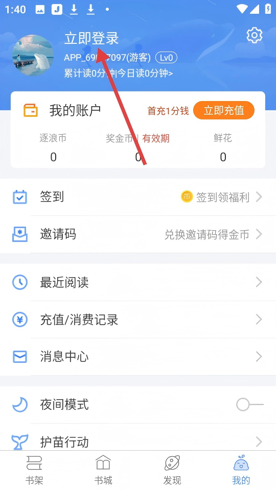 3、在逐浪小說【我的】界面,點(diǎn)擊【立即登錄】,可進(jìn)行賬號(hào)登錄操作。