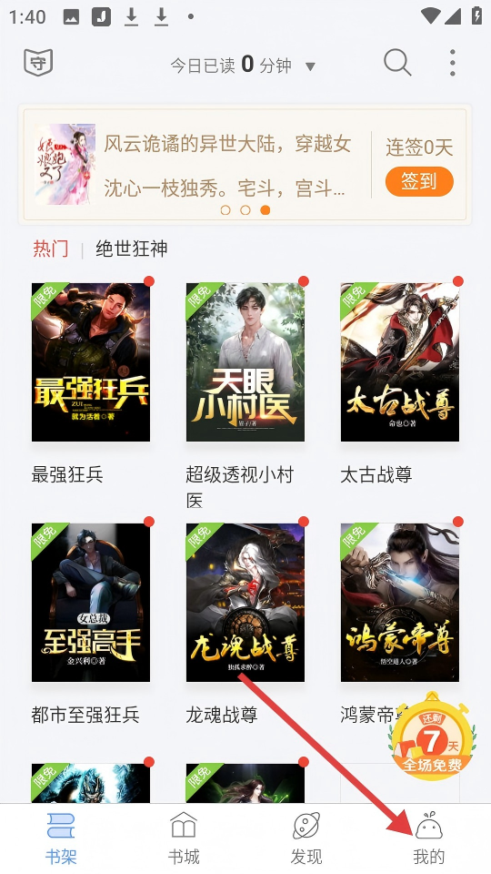 2、進(jìn)入逐浪小說主界面后,點(diǎn)擊右下角【我的】,可進(jìn)入個(gè)人中心。