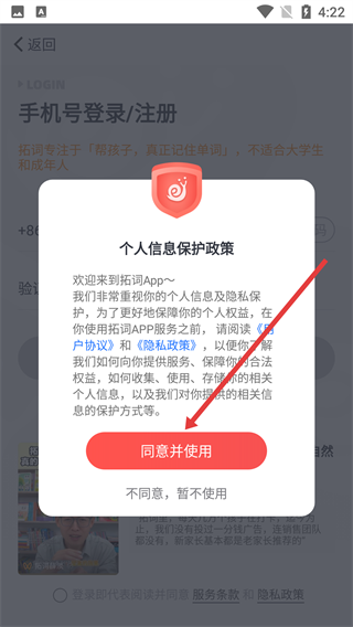 2、在彈出的【個人信息保護政策】窗口中,點擊【同意并使用】,繼續(xù)操作。