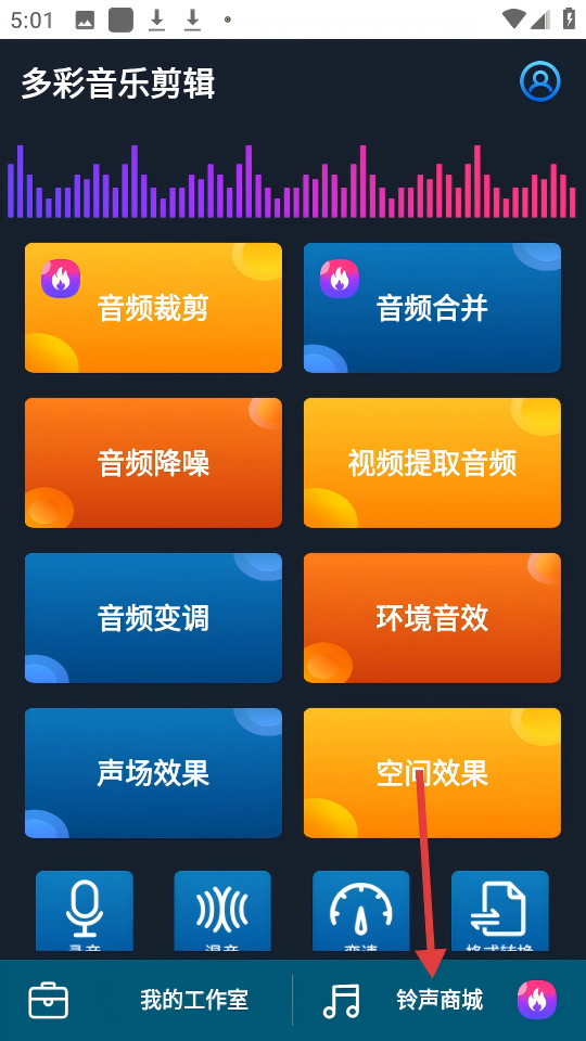 1、進(jìn)入軟件,點(diǎn)擊底部【鈴聲商城】可進(jìn)入鈴聲相關(guān)板塊。