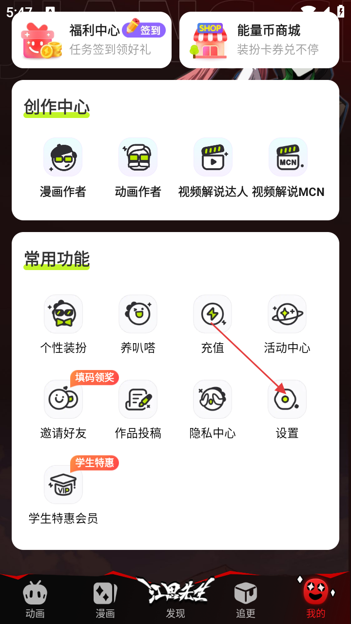 2、在【我的】頁面,點(diǎn)擊【設(shè)置】,可進(jìn)入設(shè)置界面進(jìn)行相關(guān)功能設(shè)置。