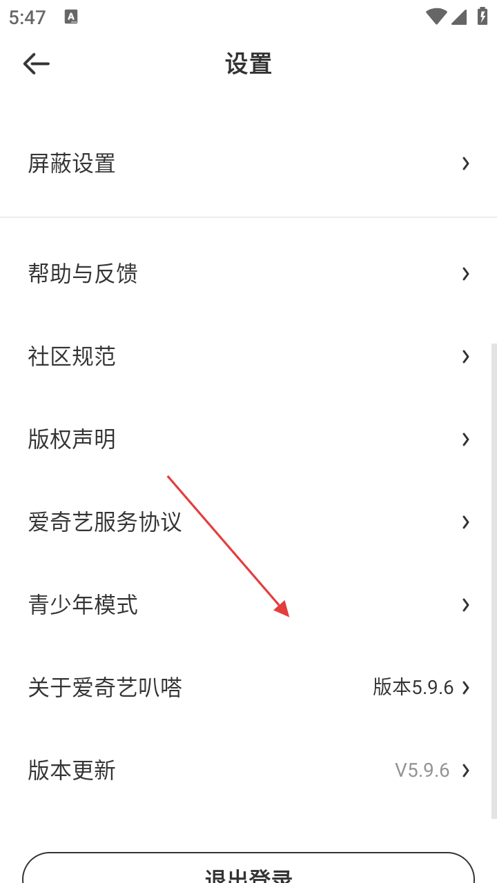 3、在設(shè)置界面,點(diǎn)擊【青少年模式】,可查看愛奇藝叭嗒青少年模式的相關(guān)說明。