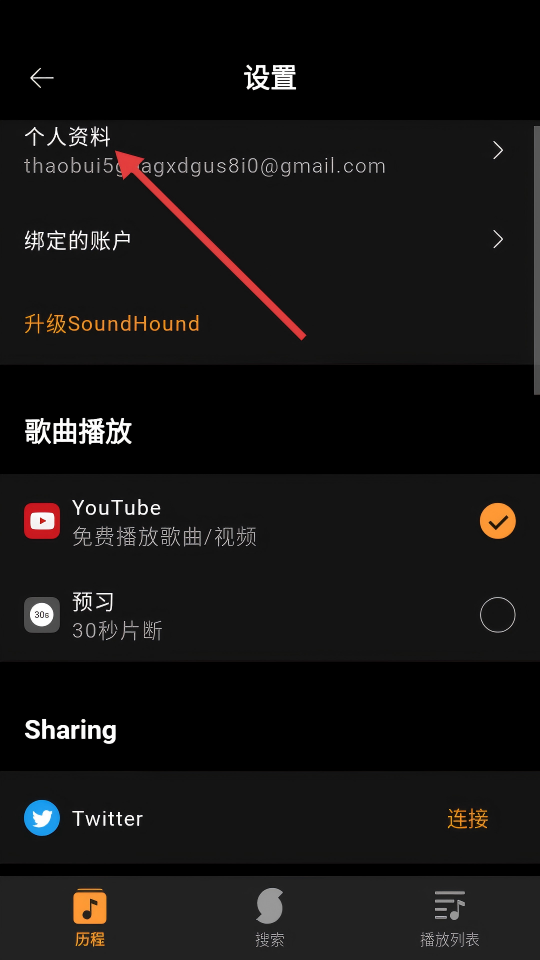 2、在設置頁面點擊【個人資料】選項,進入個人資料界面。