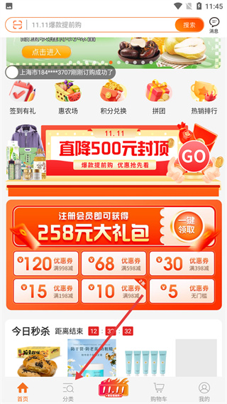 1、在APP首頁(yè),點(diǎn)擊底部【分類】按鈕,進(jìn)入商品分類頁(yè)面。