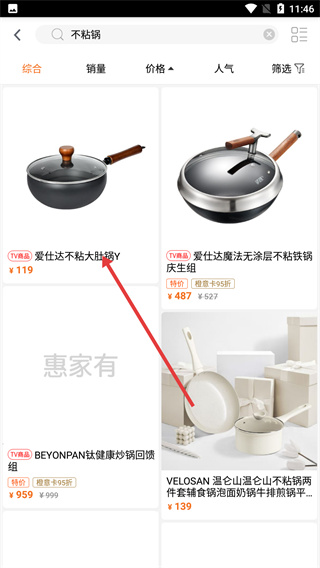 3、在不粘鍋商品列表頁(yè)面,點(diǎn)擊【愛仕達(dá)不粘大肚鍋Y】商品,進(jìn)入該商品的詳情頁(yè)面。