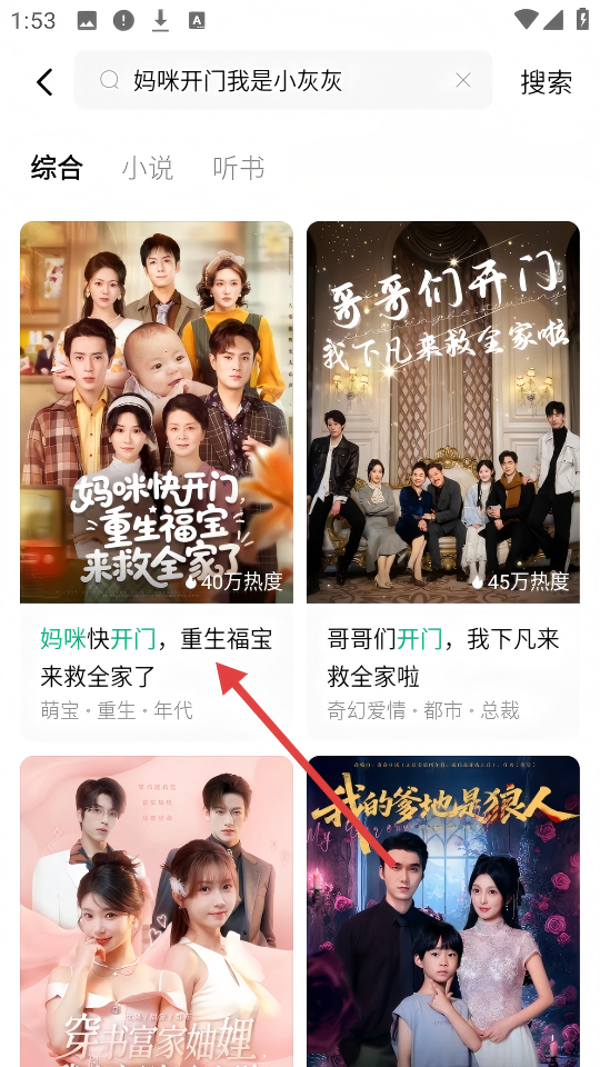 4、搜索【媽咪開門我是小灰灰】后,在【綜合】分類下可選擇對(duì)應(yīng)短劇觀看。