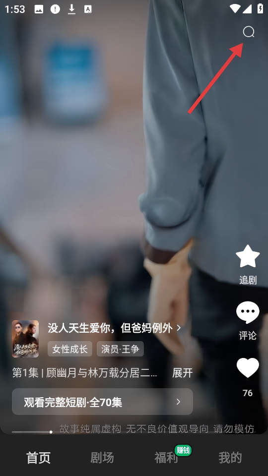 1、點(diǎn)擊【搜索】圖標(biāo)可進(jìn)入搜索頁(yè)面查找短劇。