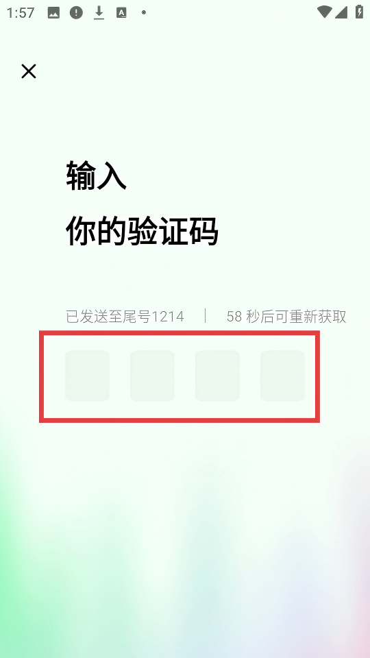 4、在驗證碼頁輸入發(fā)送到手機的四位數(shù)驗證碼完成登錄。