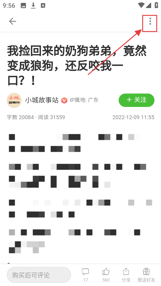 2、進入文章詳情頁后,點擊右上角三點按鈕,可彈出功能選項,選擇操作功能啦。