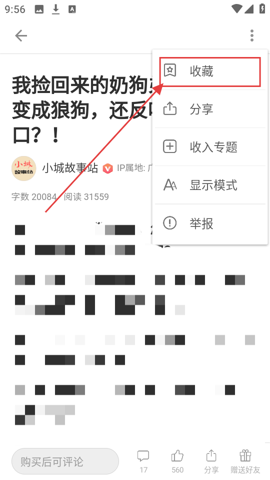 3、在彈出的功能選項中,點擊【收藏】,可將該文章收藏起來,方便后續(xù)查看哦。