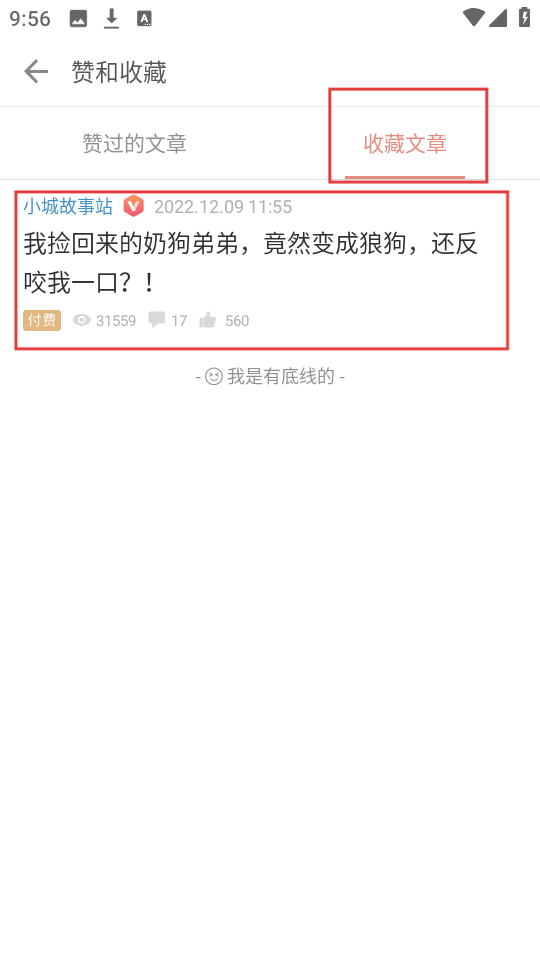 4、收藏后,在贊和收藏頁面的收藏文章列表中,可看到已收藏的文章,隨時可查看啦。