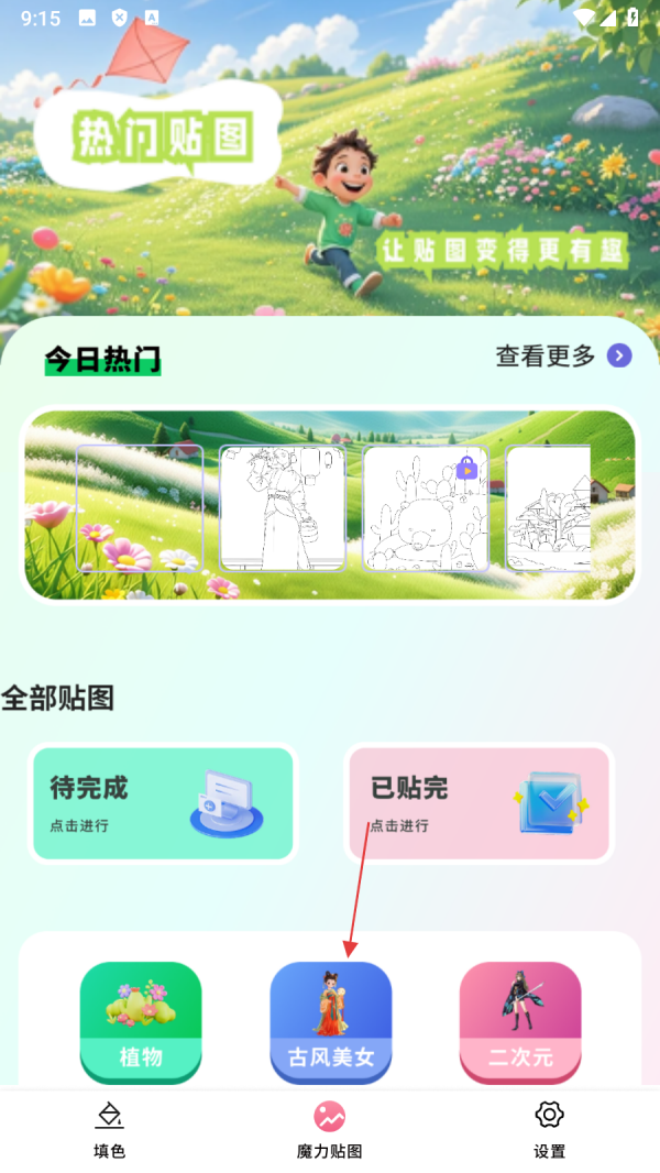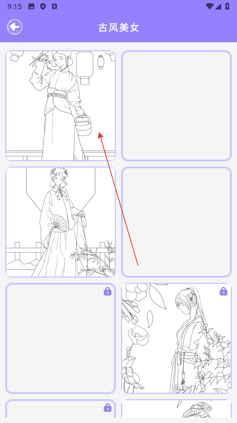 1、點(diǎn)擊【古風(fēng)美女】,進(jìn)入古風(fēng)美女貼圖選擇頁面。