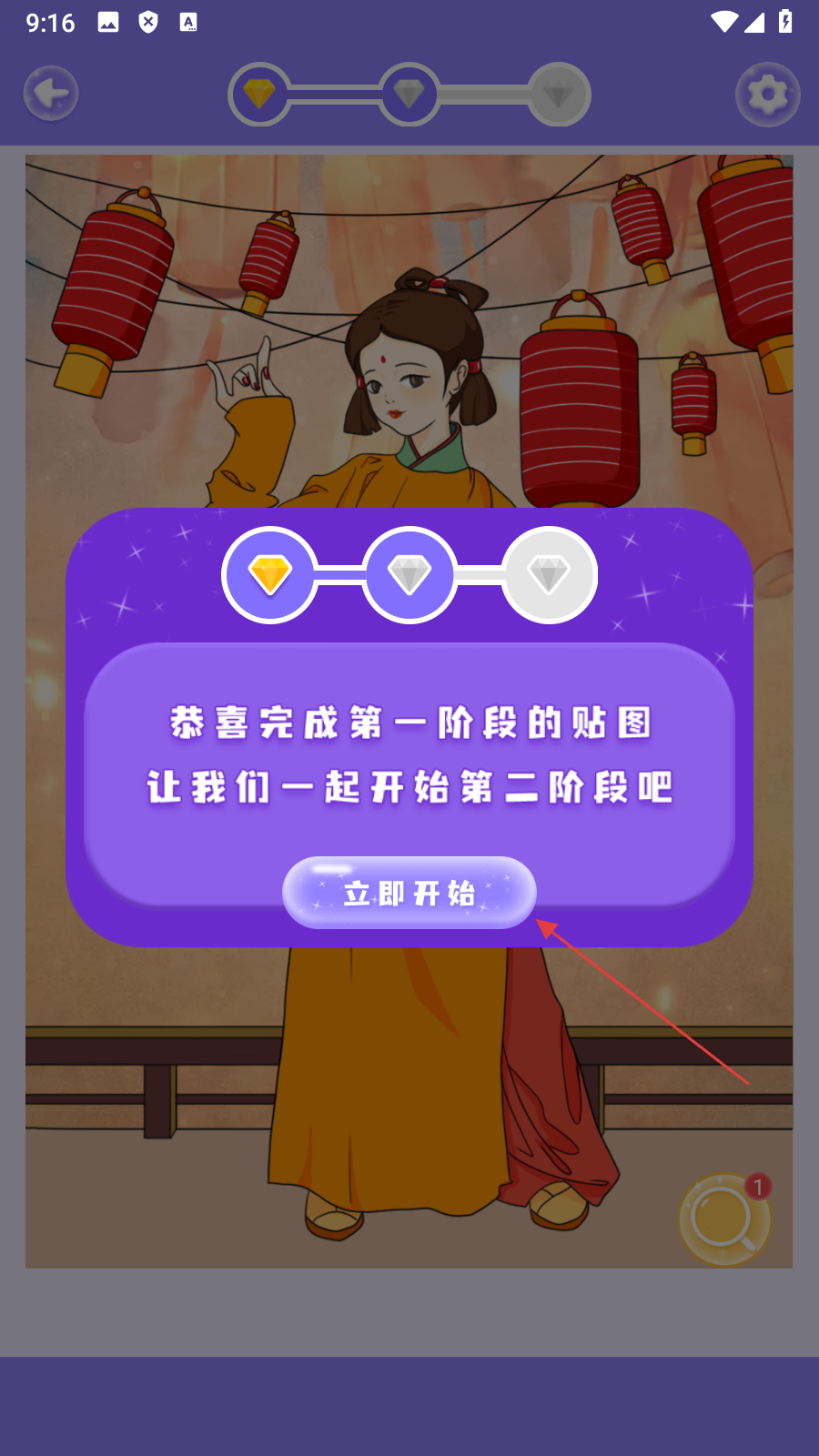 4、在第一階段貼圖完成后,點(diǎn)擊【立即開始】,即可進(jìn)入第二階段貼圖繼續(xù)操作。