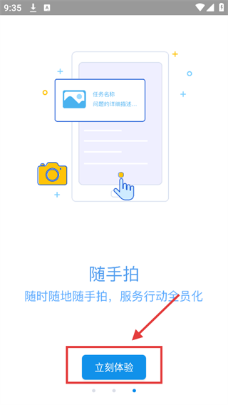 1、點(diǎn)擊【立刻體驗(yàn)】按鈕,可進(jìn)入陽(yáng)光物管APP的隨手拍功能體驗(yàn)或后續(xù)流程。