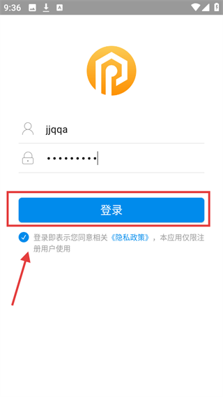 4、勾選隱私政策復(fù)選框后,點(diǎn)擊【登錄】按鈕,即可登錄陽(yáng)光物管APP。