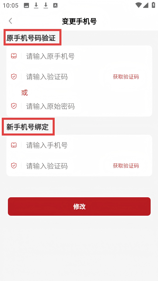 4、在【變更手機(jī)號(hào)】頁(yè)面完成【原手機(jī)號(hào)碼驗(yàn)證】和【新手機(jī)號(hào)綁定】后點(diǎn)擊修改。