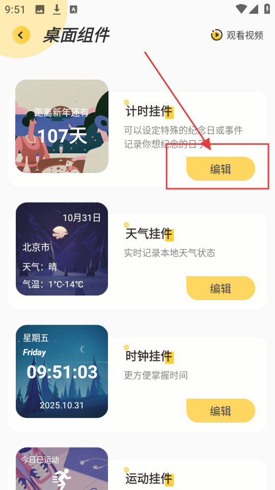 2、桌面組件里的【計(jì)時(shí)掛件】可編輯,點(diǎn)【編輯】就能設(shè)置特殊紀(jì)念日,快去操作吧。