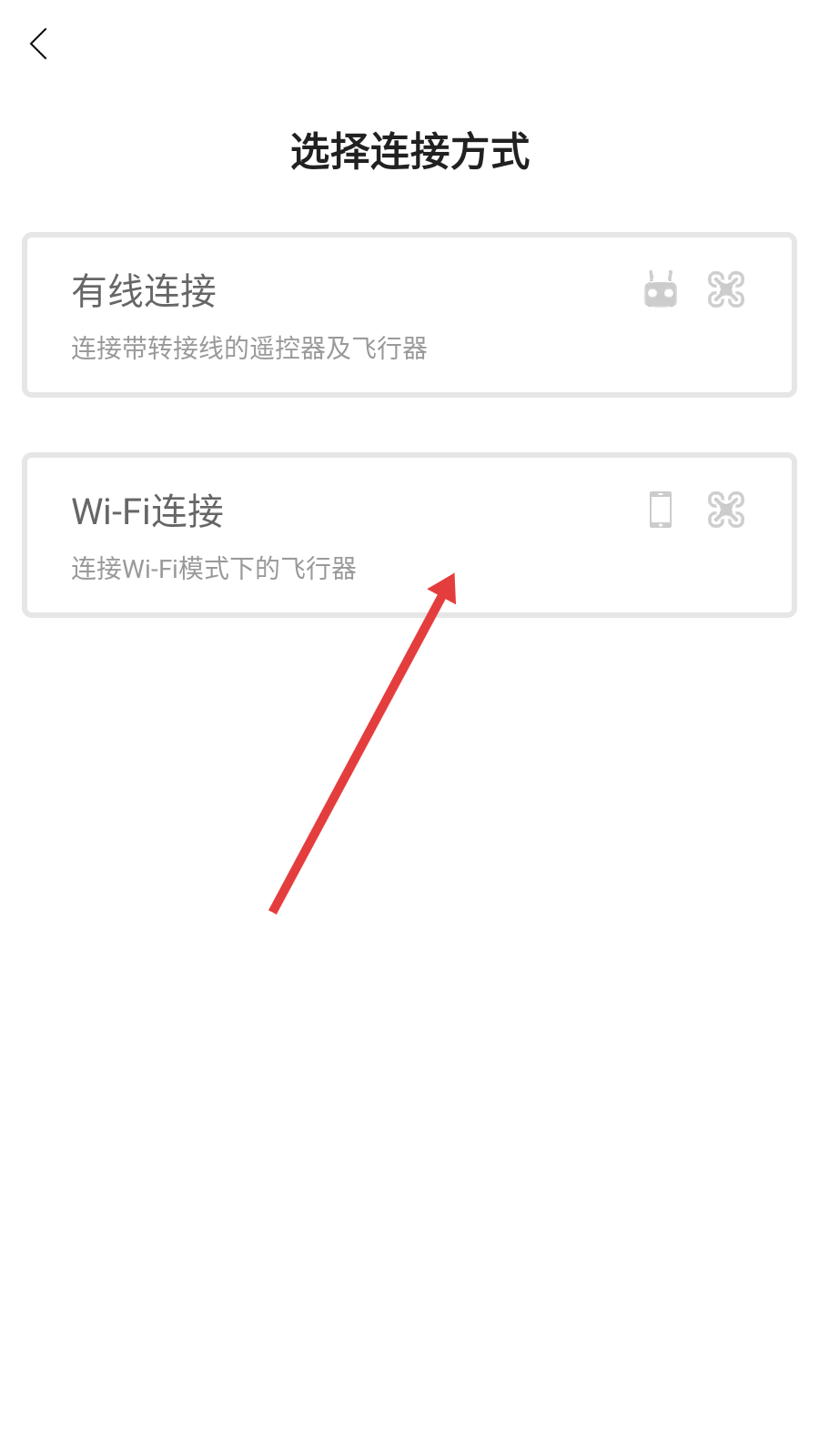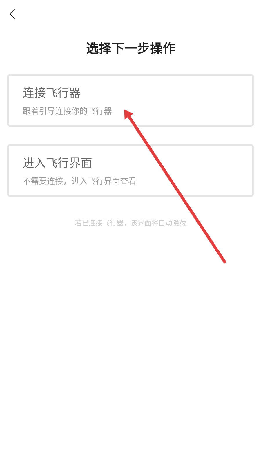 2、在“選擇下一步操作”界面,點(diǎn)擊【連接飛行器】選項(xiàng),進(jìn)入連接方式選擇環(huán)節(jié)。