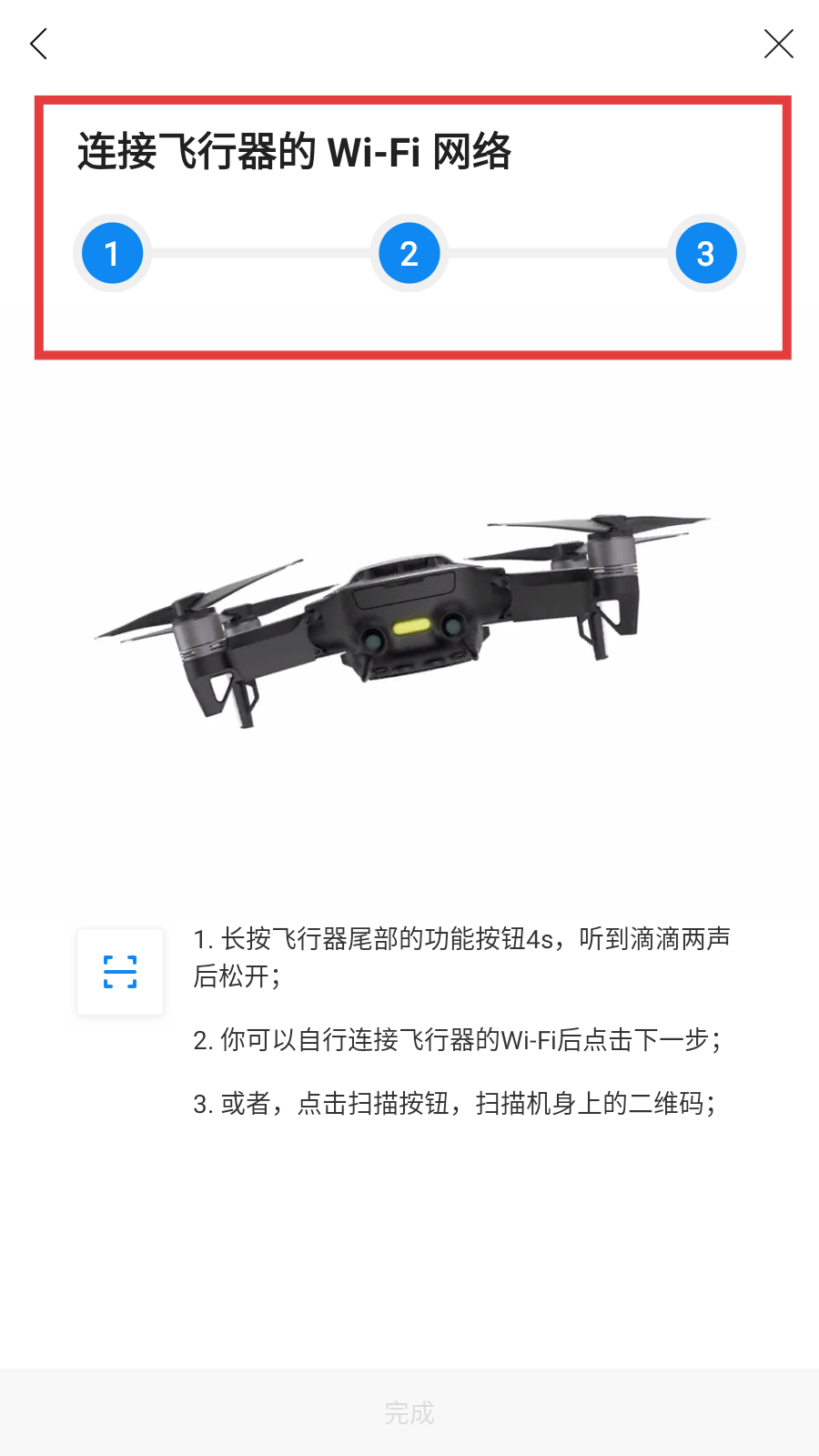 4、按照頁面提示,完成飛行器網(wǎng)絡(luò)連接。