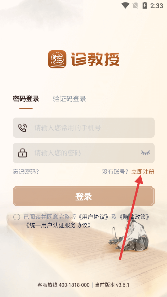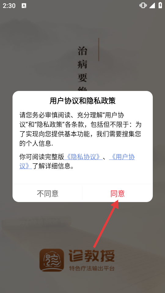 1、在用戶協(xié)議和隱私政策彈窗中點(diǎn)擊【同意】,進(jìn)入應(yīng)用登錄頁(yè)面。