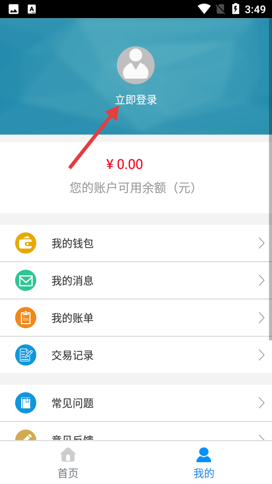 1、點擊底部【我的】,進入個人頁面,可看到“立即登錄”入口,用于進行賬號的登錄或注冊操作。