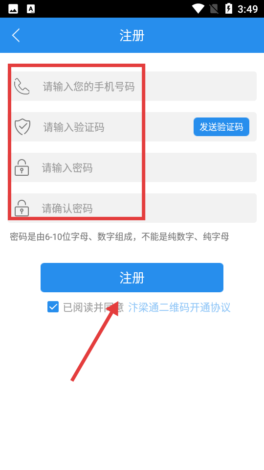4、完成相關(guān)信息填寫后,點擊【注冊】,注冊后可使用刷碼乘車、賬戶充值等公交服務(wù)功能。