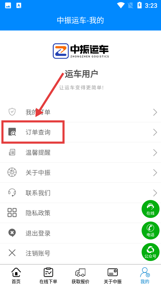 3、在個人頁面點擊【訂單查詢】,進入訂單查詢頁面。