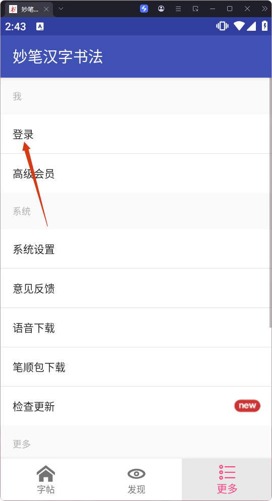 4、點擊【登錄】按鈕,完成賬號登錄操作,登錄后可使用妙筆漢字書法的相關(guān)書法學(xué)習功能。