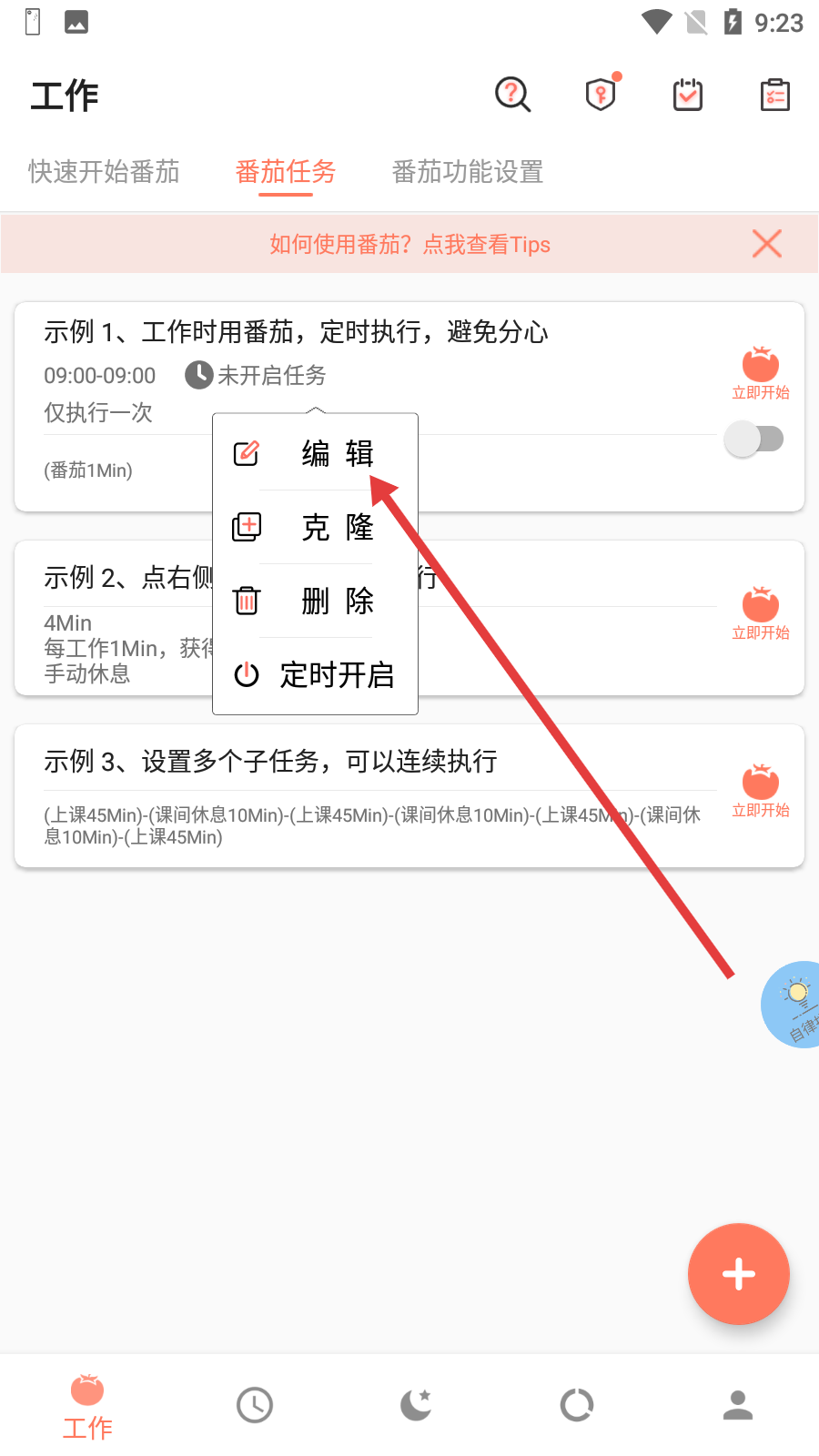 2、在功能菜單中,點擊【編輯】選項,進入編輯番茄任務頁面。