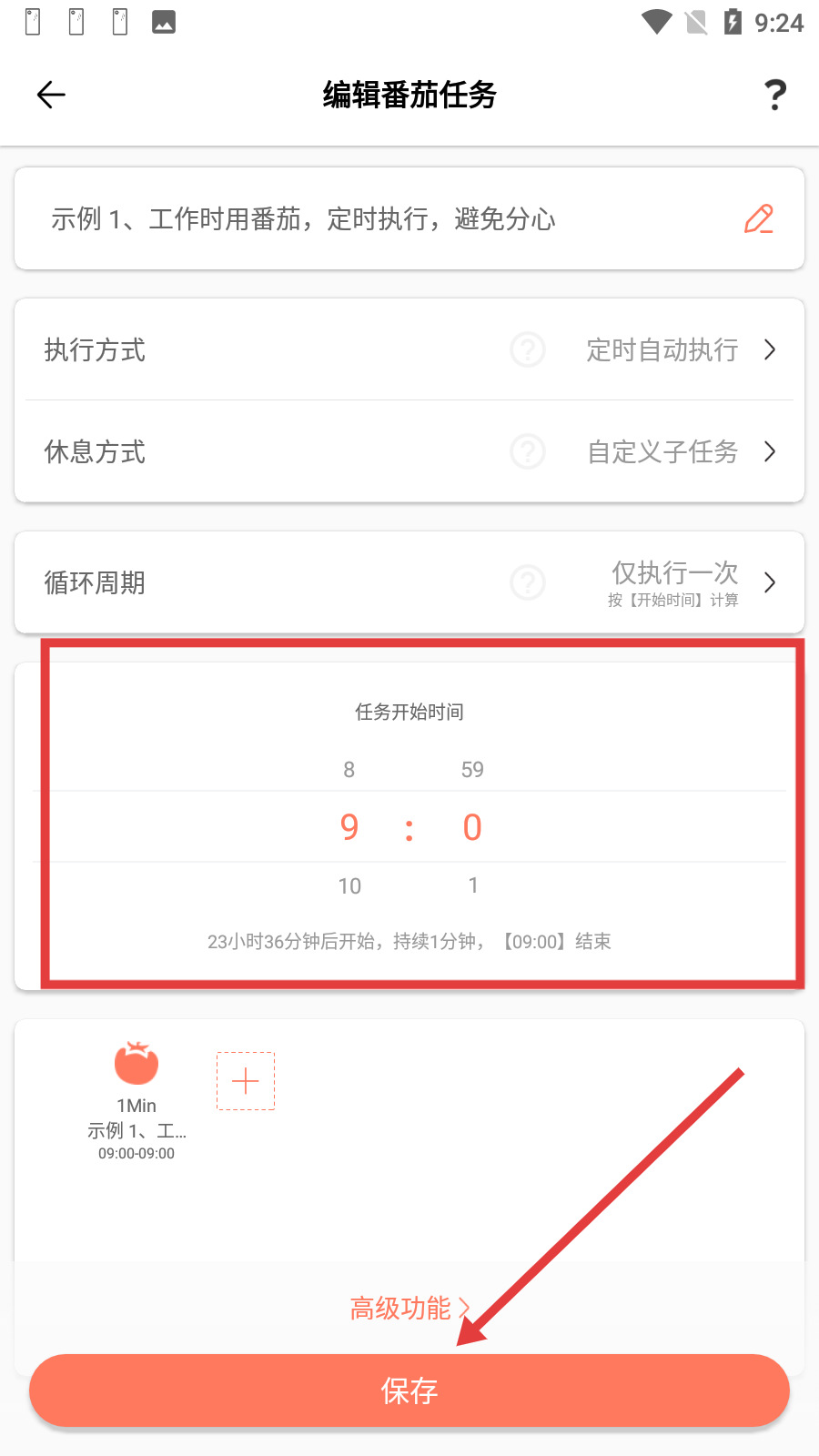 3、在編輯頁面設置任務時間等信息后,點擊【保存】按鈕,完成任務編輯。