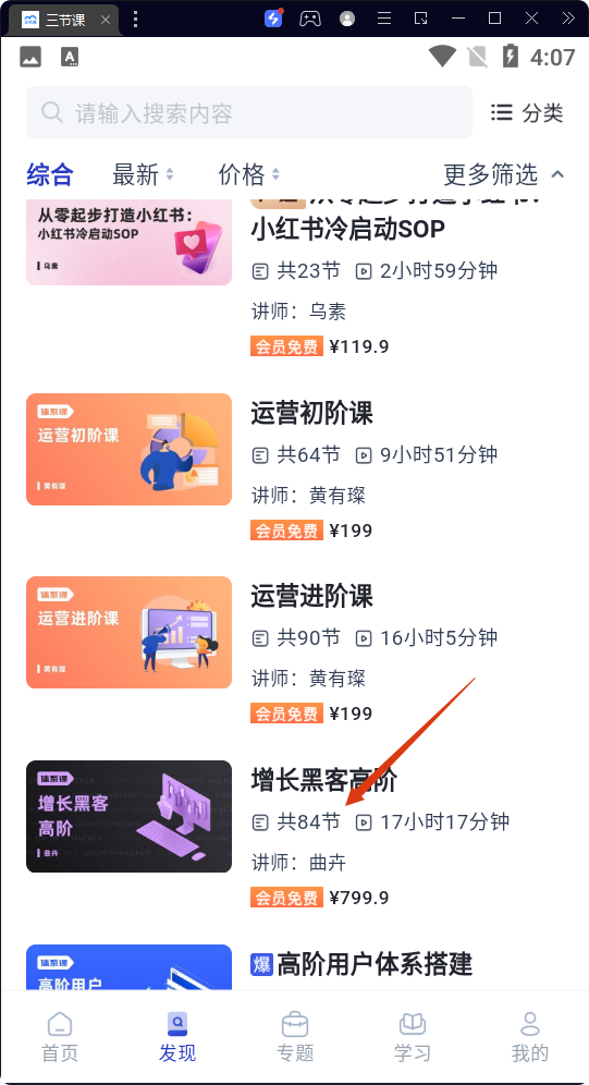 2、在發(fā)現(xiàn)頁面選擇目標課程,進入課程詳情頁面。