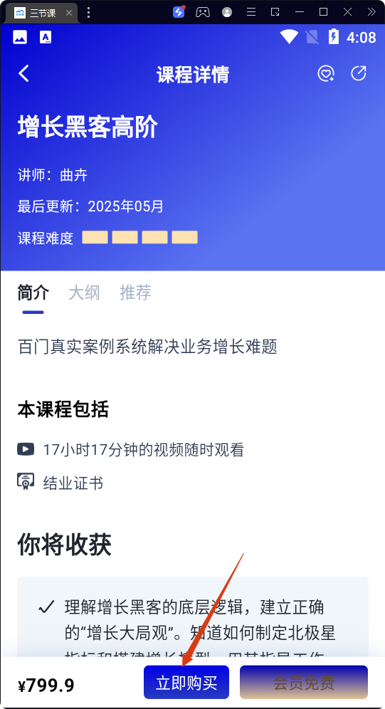 3、在課程詳情頁面點擊【立即購買】,進入登錄頁面。