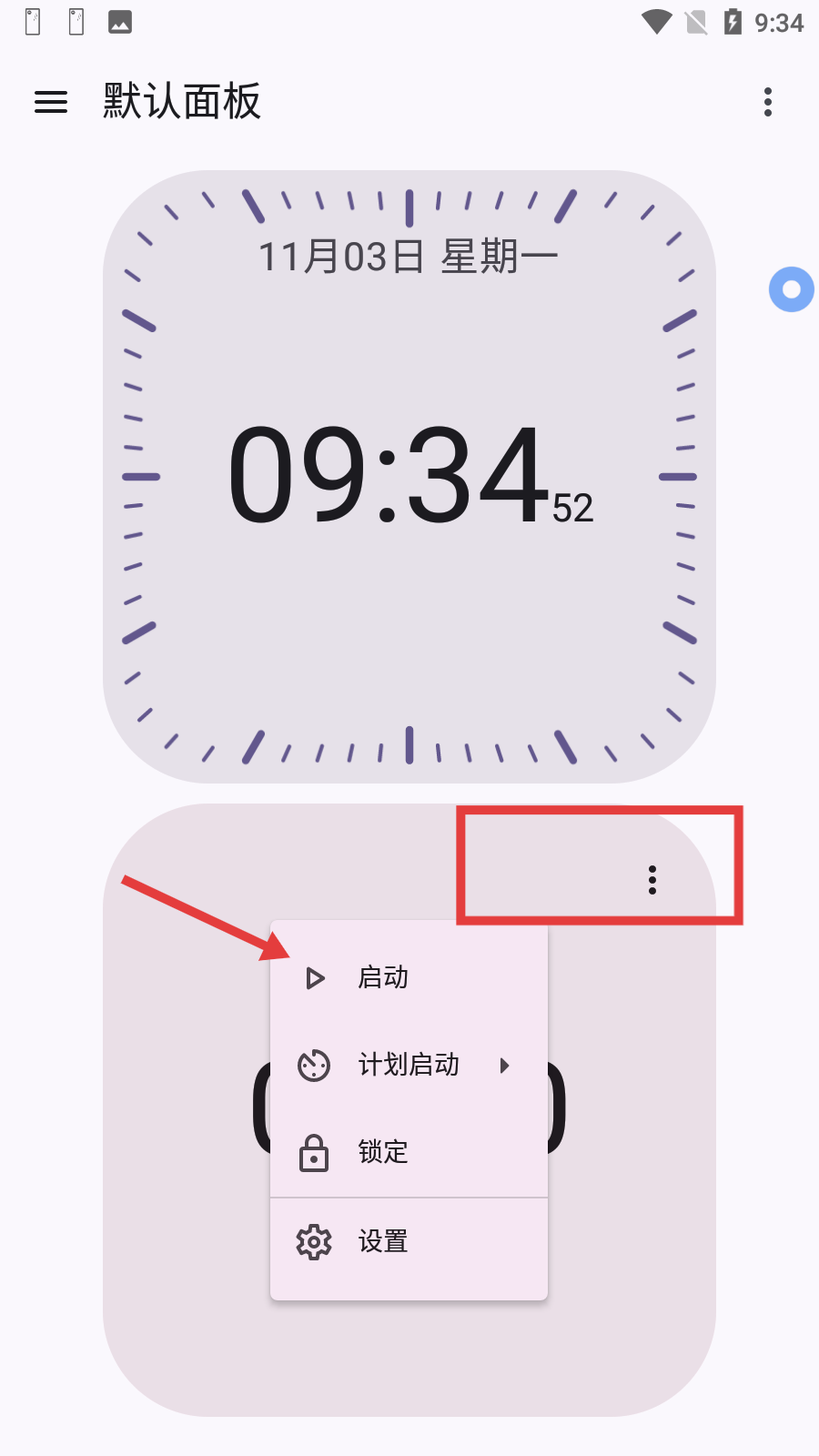 4、在默認(rèn)界面時(shí)鐘底下即可看到設(shè)置的倒計(jì)時(shí)器,選擇【啟動(dòng)】選項(xiàng)立即運(yùn)行時(shí)鐘。