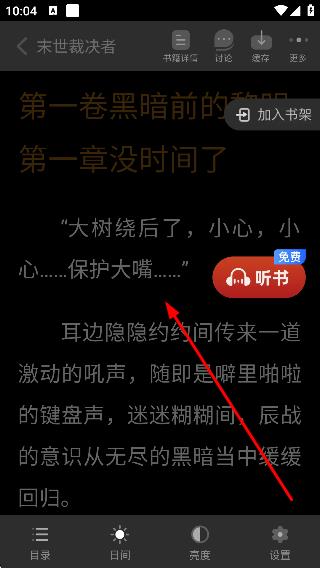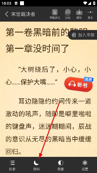 3、在閱讀界面點擊【夜間】,切換閱讀模式。