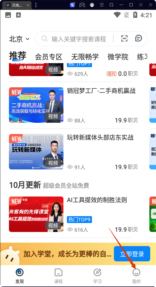 4、點(diǎn)擊【登錄】按鈕,完成賬號(hào)登錄操作,登錄后可使用貝殼經(jīng)紀(jì)學(xué)堂的課程學(xué)習(xí)等功能。