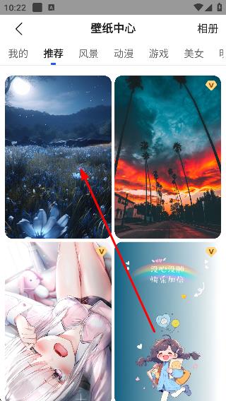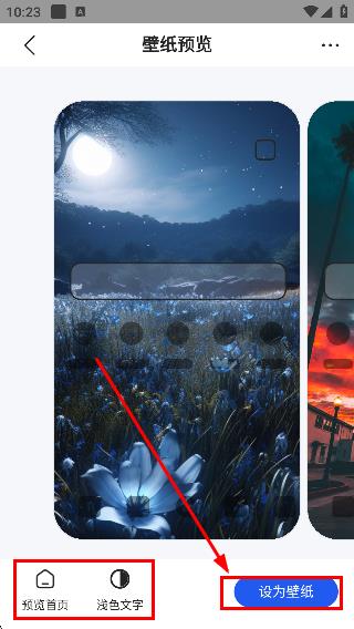 3、在壁紙選擇頁面選擇目標(biāo)壁紙,如藍(lán)色花海夜景壁紙,進(jìn)入壁紙預(yù)覽頁面。
