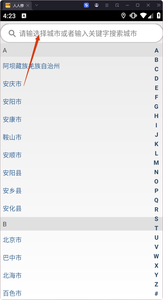 1、打開軟件,在輸入框內(nèi)輸入我們自己所在的城市,方便后續(xù)使用。