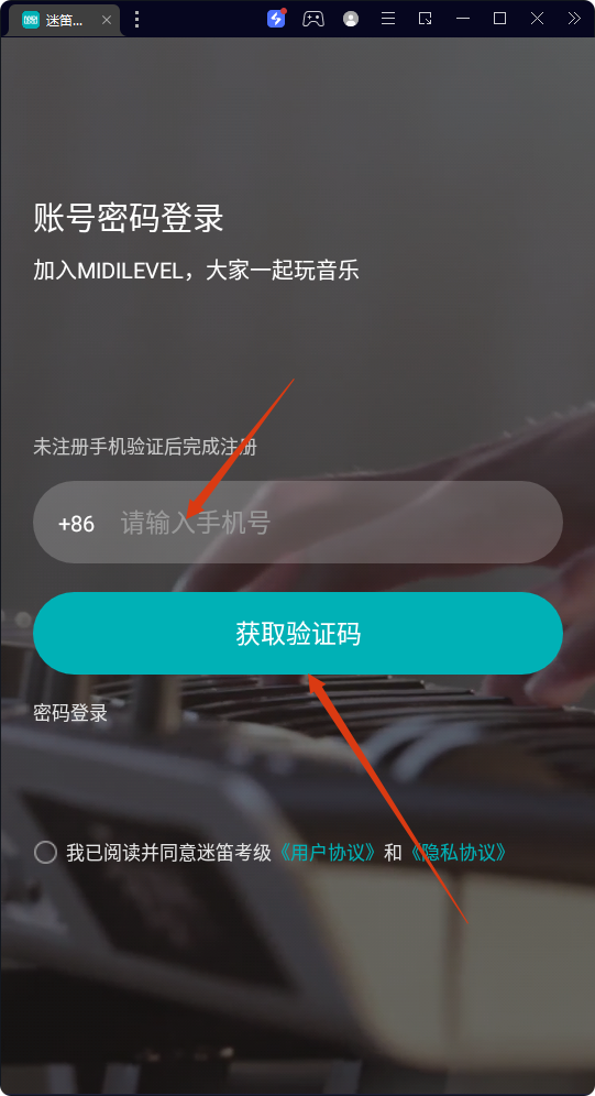 2、在驗證碼登錄頁面輸入【手機號】,點擊【獲取驗證碼】。