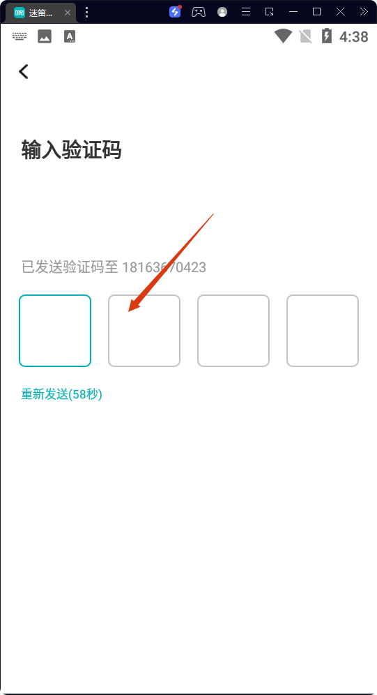 3、進入輸入驗證碼頁面,輸入收到的驗證碼。