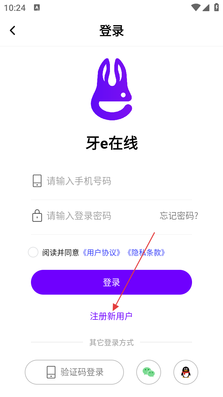 2、在登錄界面,可輸入手機(jī)號(hào)和密碼登錄,也可點(diǎn)擊【注冊(cè)新用戶】進(jìn)行賬號(hào)注冊(cè),還可選擇驗(yàn)證碼登錄、微信或QQ登錄。