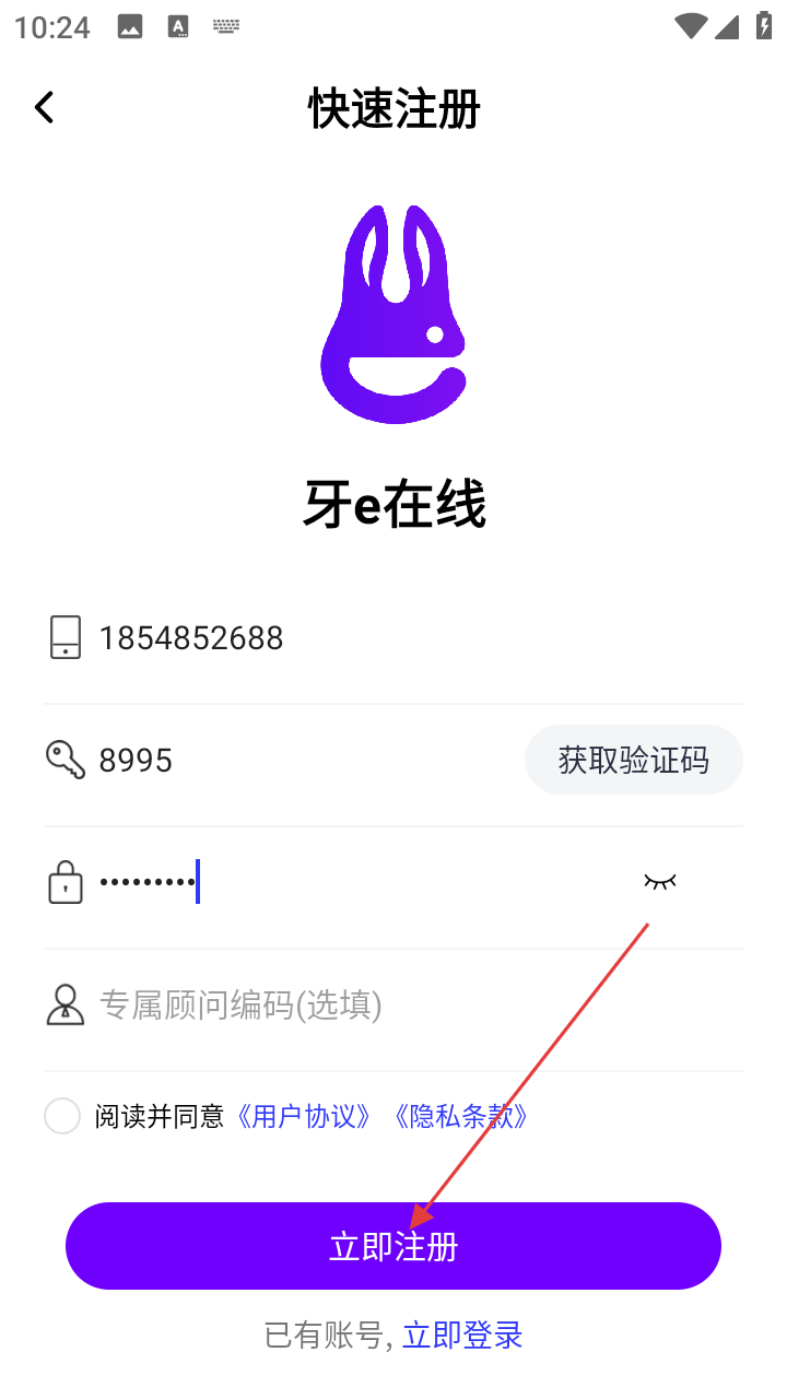 4、填寫好注冊(cè)信息后,點(diǎn)擊【立即注冊(cè)】按鈕,即可完成賬號(hào)注冊(cè)流程。