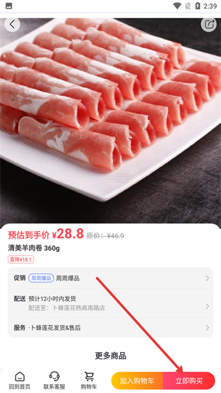 3、在商品詳情頁面,點(diǎn)擊【立即購買】按鈕。