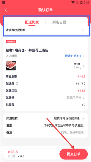 4、提供蓮花自提服務(wù),用戶可按自身時間選擇下單后到指定門店取貨,避免等待配送的時間,同時保障商品新鮮度,適配多樣需求。