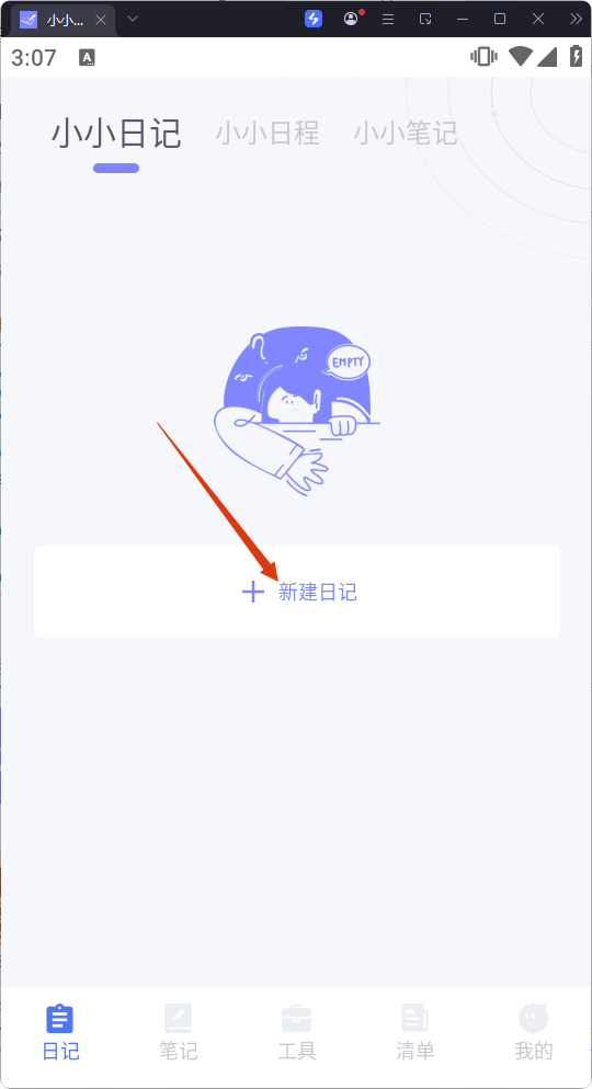 1、在小小日記頁(yè)面點(diǎn)擊【新建日記】,進(jìn)入日記創(chuàng)建流程。