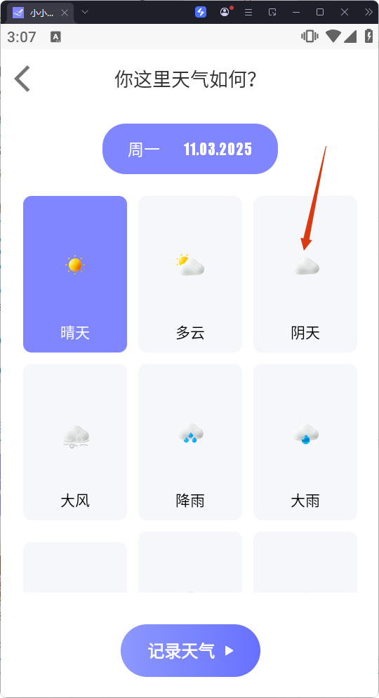 2、在添加界面,選擇當(dāng)天天氣,記錄天氣狀況。