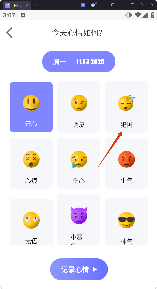 3、接著選擇當(dāng)天心情,記錄情緒狀態(tài)。