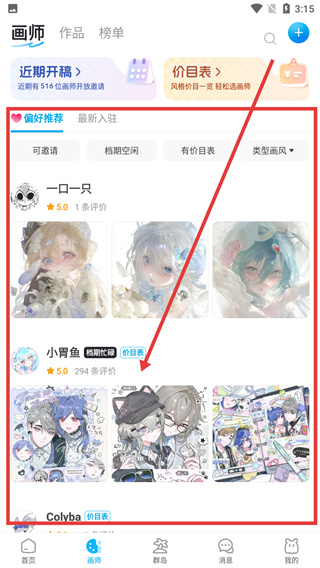 2、在畫(huà)師列表中,選擇目標(biāo)畫(huà)師。