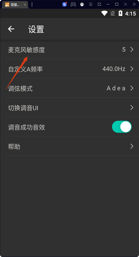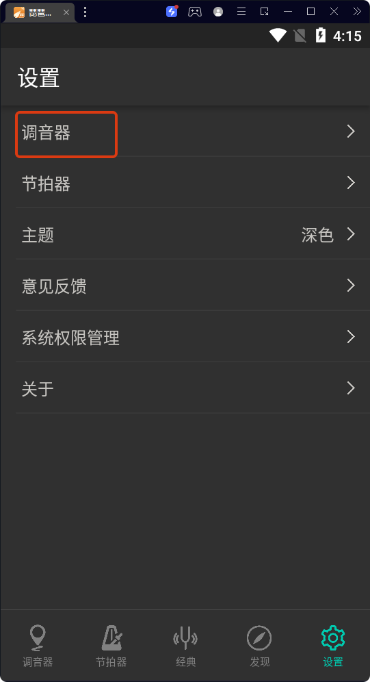 2、在設(shè)置頁(yè)面選擇【調(diào)音器】,進(jìn)入調(diào)音器設(shè)置界面。