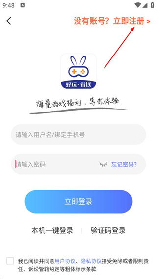 3、在登錄界面,點(diǎn)擊右上角【立即注冊】選項(xiàng),進(jìn)入賬號(hào)注冊界面。