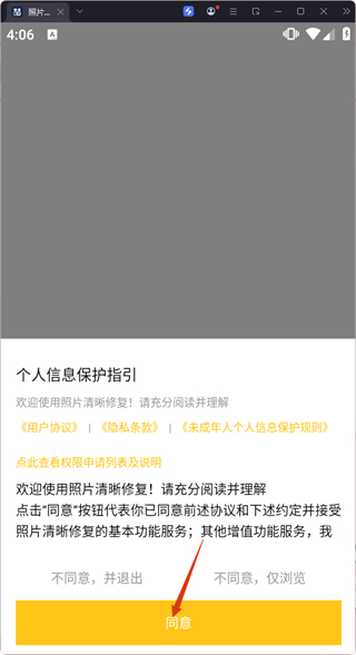 1、在個(gè)人信息保護(hù)指引彈窗中點(diǎn)擊【同意】,進(jìn)入應(yīng)用首頁(yè)。